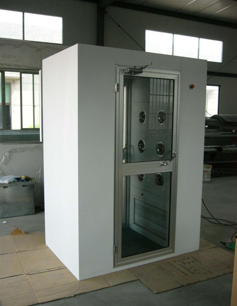 風淋室應用于微電子、光電、半導體、醫藥、食品、化工、航空、汽車、印刷、實驗室等各個無塵車間與非無塵車間、階梯潔凈度車間中,用于從低潔凈度房間進入高潔凈度房間過程中除去人各部位大于0.3微米粉塵顆粒,以免進入潔凈房后帶去污染。同時也起到氣流緩沖作用,因為在開門的過程中,附帶有空氣的流動,風淋室很好的把氣流流動停于風淋室內部,很好的避免了空氣流動所帶來的空氣污染