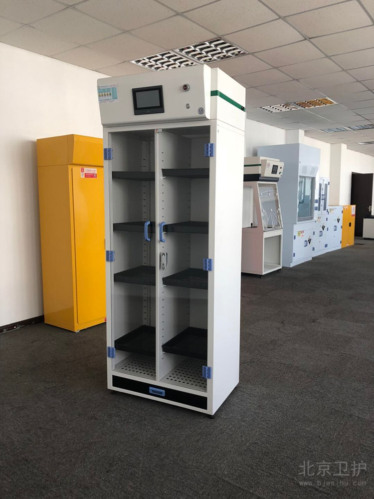 凈氣型儲藥柜頂部配備風機和過濾裝置,風機運轉使得柜內形成負壓,空氣從進氣口進入,有毒氣體和粉塵的空氣將被活性炭過濾器和高效粒子過濾器過濾,經過過濾后潔凈的空氣返回室內。凈氣型儲藥柜用來保護實驗室人員在存儲化學品時帶來的吸入危害,同時能夠24小···